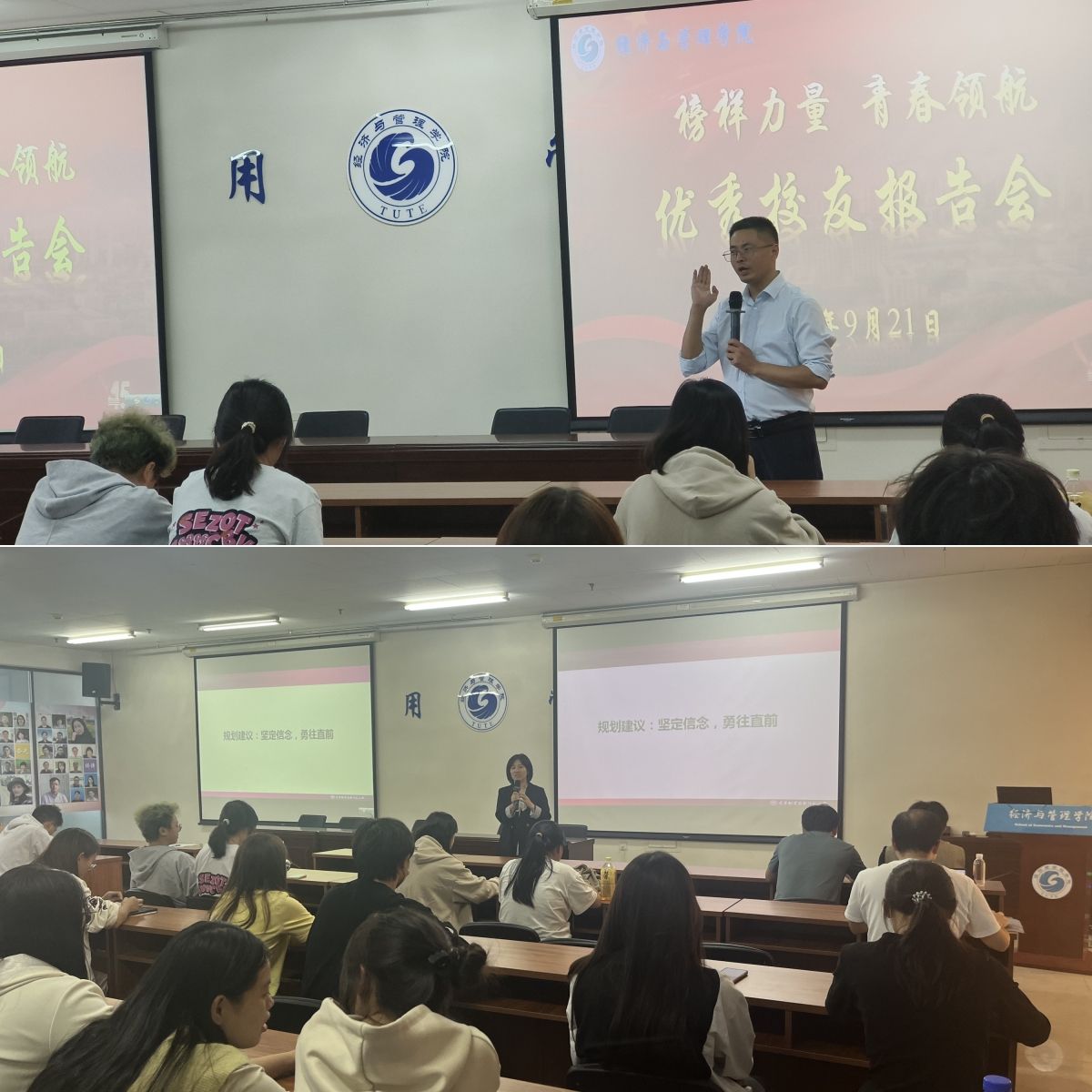 9月21日,在PlayAce官方网站建校45周年之际,PA视讯官方网站邀请天津大学讲师、团队博士生导师、天津市哲社科创新团队副主任、公司金融学专业2016届优秀毕业生马韶君以及中硕(天津)教育管理有限公司、天津卓锐纵才职业培训公司有限公司、天津仁衡教育科技有限公司创始人、公司人力专业2008届优秀毕业生刘彦颖,在第一教学楼701教室作“榜样力量,青春领航”主题优秀员工报告。公司党委副书记郭丽芳,人力资源与社会保障系主任刘解放,辅导员代表、员工代表共同参加了报告会。会议由刘解放主持。
