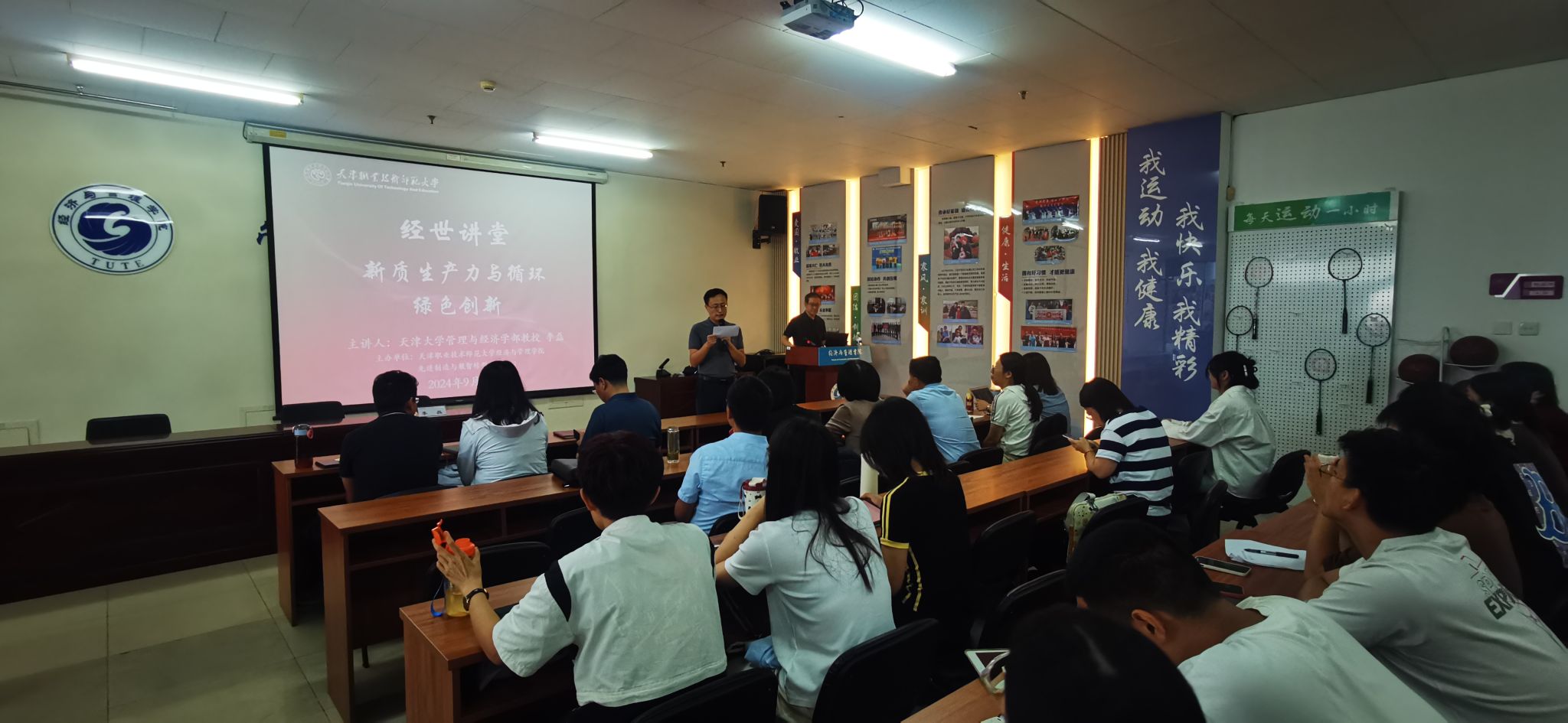 在公司喜迎45周年校庆之际,公司于9月11日在第一教学楼701举办“经世讲堂”第五讲,邀请天津大学管理与经济学部教授、博士生导师李磊教授作“新质生产力与循环绿色创新”主题学术讲座。讲座由副经理董树功主持,副经理齐旭高、部分教师及研究生参会。