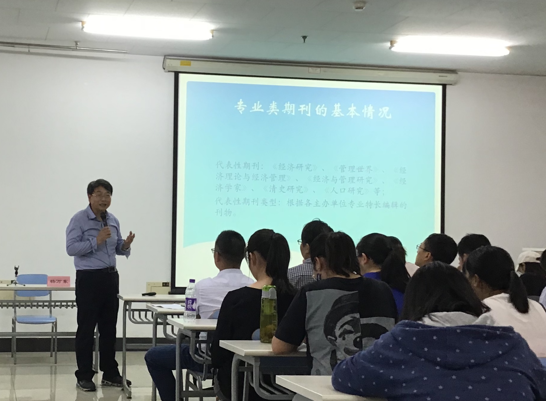 两位教授都在社科领域取得了卓越成绩,在论文写作与评审方面具有丰富的经验。报告会上,刘曙光演讲主题为“期刊编辑视角下的学术论文写作”,详细讲解了学术论文与文化发展,期刊与读者,作者与编辑的关系以及学术期刊的责任,从编辑的角度分析了学术论文的价值意义。杨万东演讲主题为“经济与管理类学术论文的研究、写作与发表”,详细介绍了我国专业类期刊的基本情况,学术期刊编辑的主要关注渠道与系统等,从专业的角度分析了学术论文的写作方向。在“学术论文写作”部分,两位主编总结概括了发表学术论文的三阶段,即论文题目的选择、论文的写作与修改以及论文的投稿过程,进而对论文撰写过程中选题思路、写作准备、题目拟定和写作规范等方面问题进行了深入具体的介绍与指导,为广大师生写稿、投稿提供了新的思路。