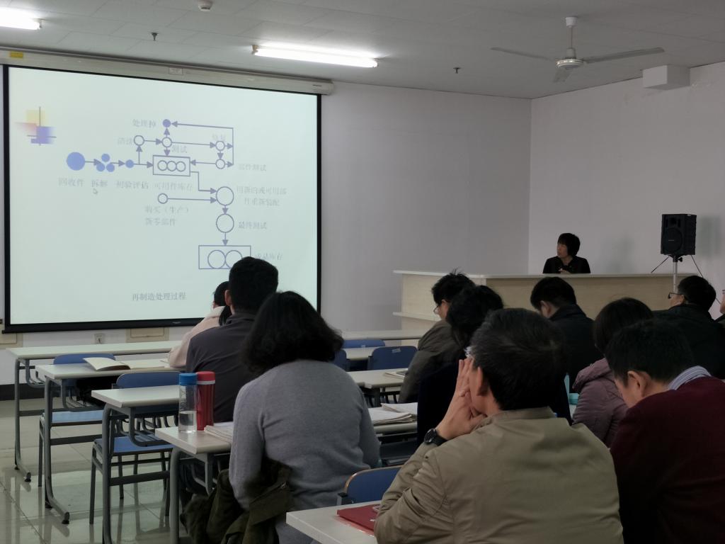 顾巧论老师以“再制造与现代制造服务业”为主题,分别介绍了现代制造服务业内涵、再制造研究背景和再制造处理过程(再使用、再循环、再制造、废弃处理)、再制造与供应链、再制造与物联网等;翟希东老师针对“对接于‘中国制造2025’的现代职业教育本科人才培养改革研究”进行了详细阐释,分享了其主要研究内容和新的研究方法;杨勇老师与大家分享了其承担的教育部人文社会科学研究项目---中国区域经济“协同发展效率陷阱”及其福利成本的研究成果,共同探讨了区域经济协同发展的相关问题。