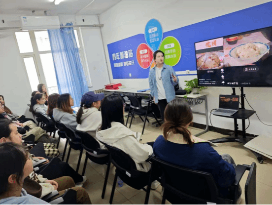 随后,周亚梅以精美的回族服饰为例,解读了服饰中蕴含的文化密码与身份象征。她详细解析了传统服饰的设计理念、工艺特色及其在民族认同中的重要作用,让同学们深刻感受到服饰不仅是遮体御寒之物,更是民族历史与文化的载体。在味觉文化环节,周亚梅向同学们展示了回族美食背后的生存智慧与文化融合。她介绍道,在干旱的西北地区,以面粉、羊油、坚果炒制而成的“碗子油茶”能快速补充热量,体现了游牧与农耕文化融合的智慧。同时,用宁夏特产黄米加入红枣、葡萄干制作而成的“黄米粘饭”,既保留了粗粮营养,又呼应了回族饮食“杂食共生”的特点。