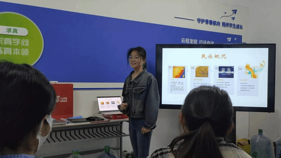 分享会上,钟怡洁首先以“畲族—一个被凤凰偏爱的民族”为引,带领大家走进这个具有独特魅力的民族。她详细介绍了畲族的族称与起源,指出畲族自称“山哈”,意为“山里的客人”,这一称呼反映了畲族的迁徙历史。目前,畲族主要聚居在福建、浙江、江西、广东、安徽、贵州等地,与当地的自然环境和历史文化紧密相连。在传统节日与饮食方面,钟怡洁重点介绍了畲族的三大传统节日:会亲节、分龙节(封龙节)和三月三乌饭节。此外,钟怡洁还介绍了畲族的特色饮食文化,如菅叶粽、畲茶、乌米饭和糍粑等,这些美食不仅美味可口,还蕴含着丰富的文化内涵。在服饰与艺术部分,钟怡洁展示了畲族的传统服饰—凤凰装,并详细讲解了其设计理念和文化象征。她提到,凤凰装以黑、青为主色调,配以银饰,女性头戴凤冠,衣饰刺绣花鸟龙凤,象征着吉祥与美好。此外,钟怡洁还介绍了畲族的竹编工艺和彩带编织技艺,这些手工艺品不仅具有实用价值,还体现了畲族人民对自然和生活的热爱。