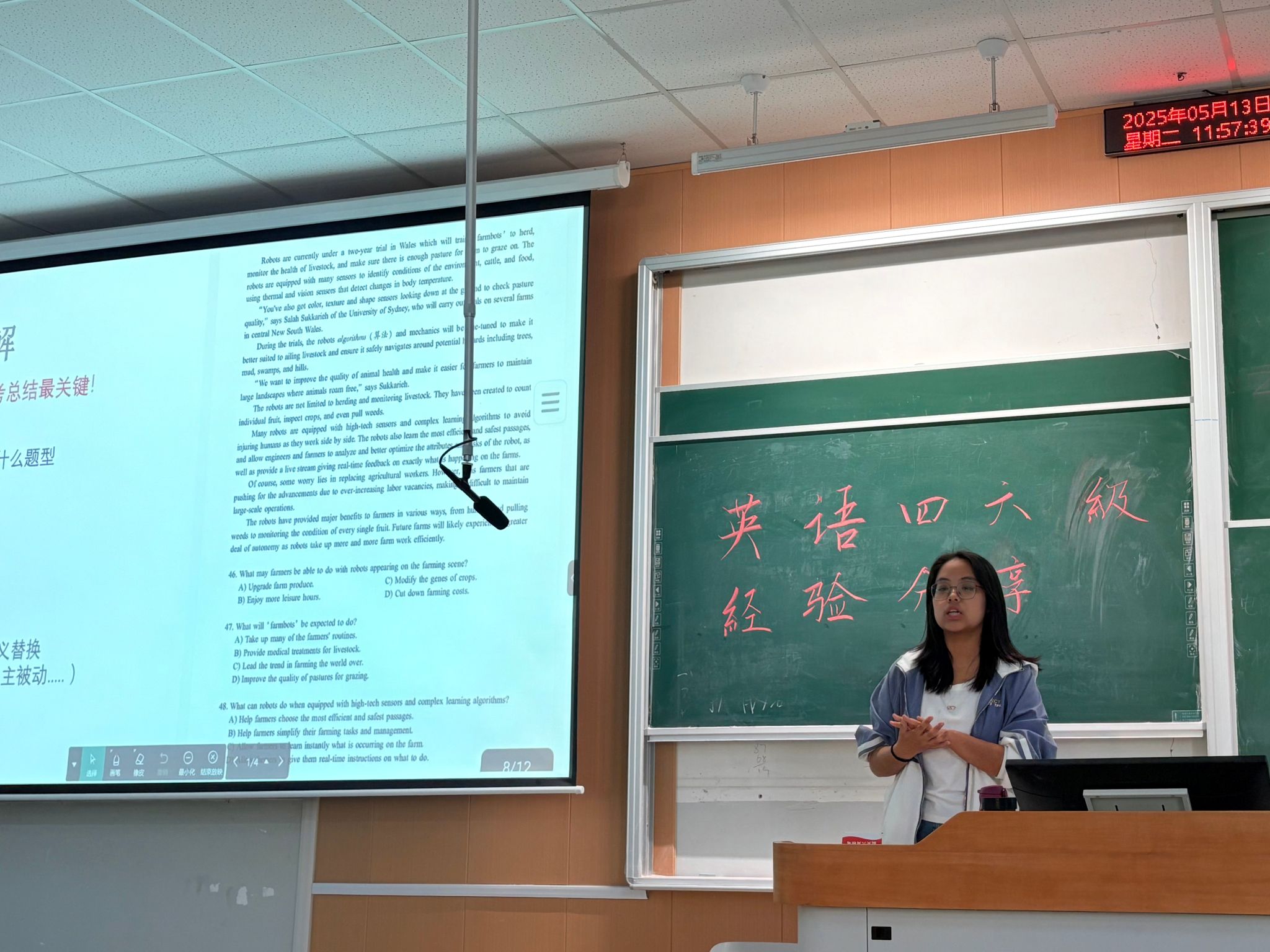 三位优秀员工代表结合大学英语四六级考试的题型特点,围绕复习计划制定、单词记忆方法、听力能力训练、阅读理解技巧、翻译和写作要点、考试时间分配、重难点与易错点分析、考前心态调整等方面进行了详细讲解,为同学们提供了实用的备考指导。同学们认真聆听,积极参与互动,现场学习氛围浓厚。