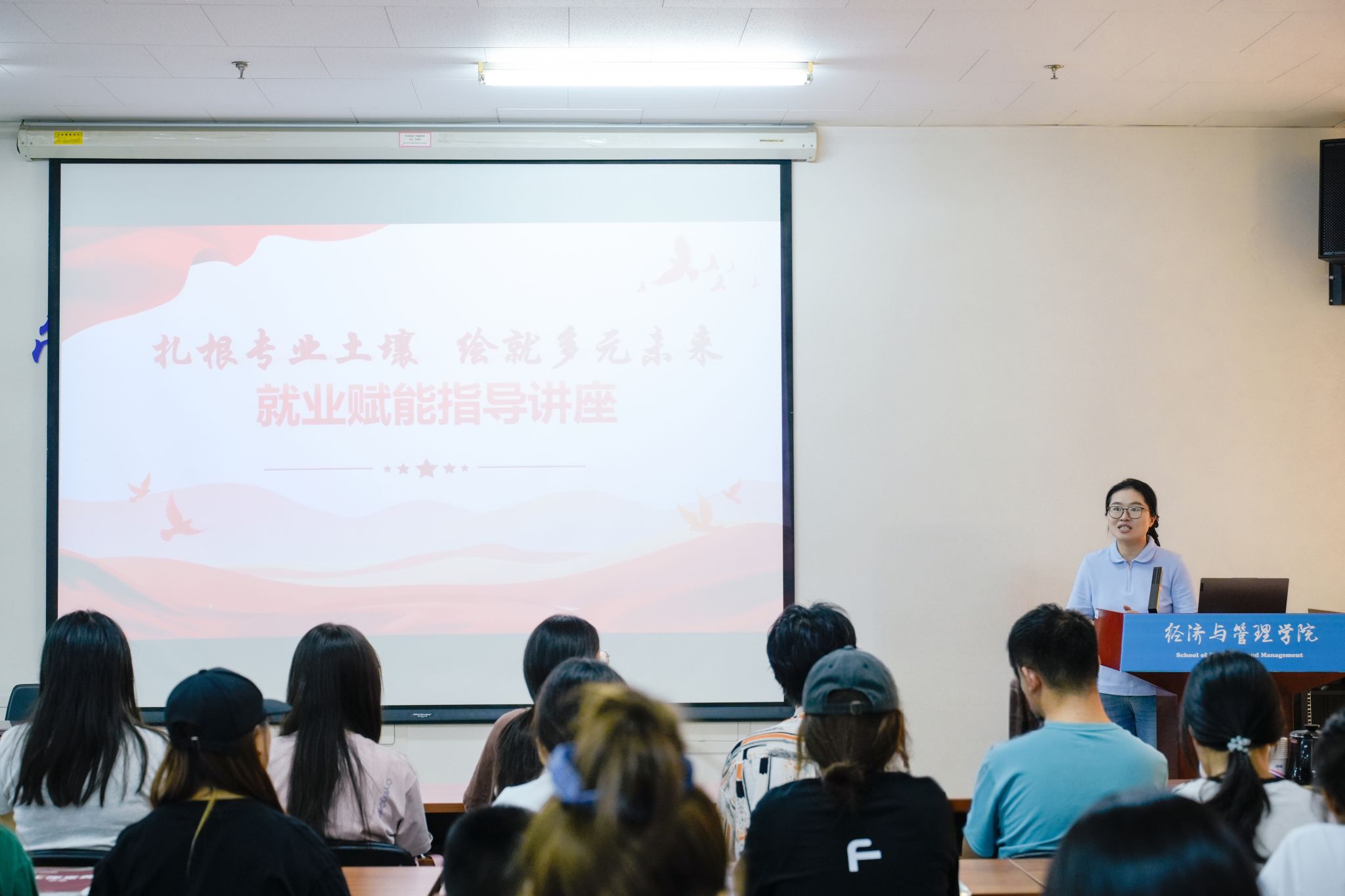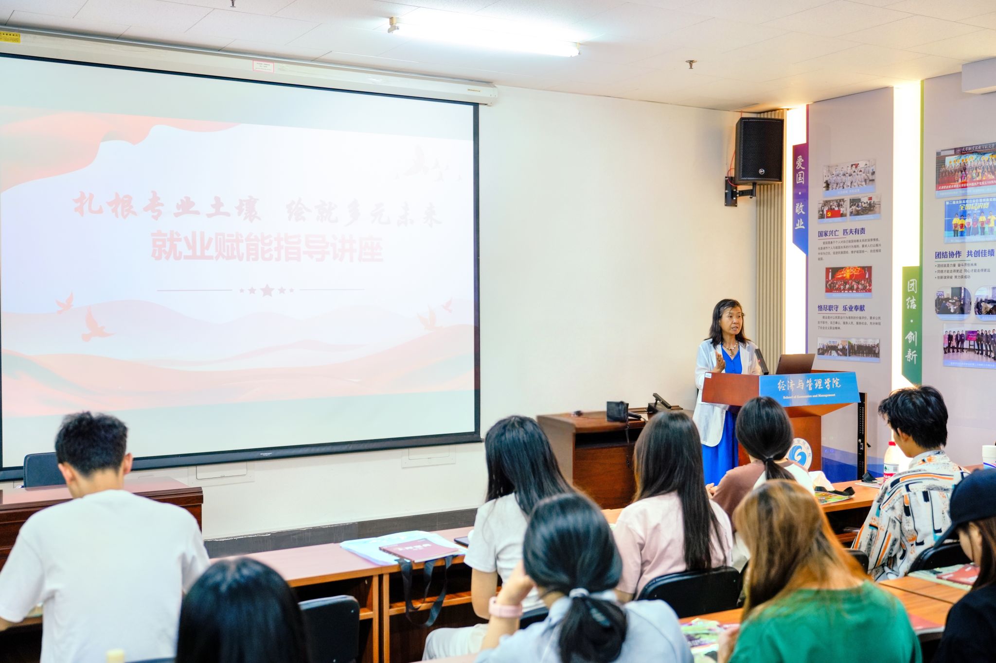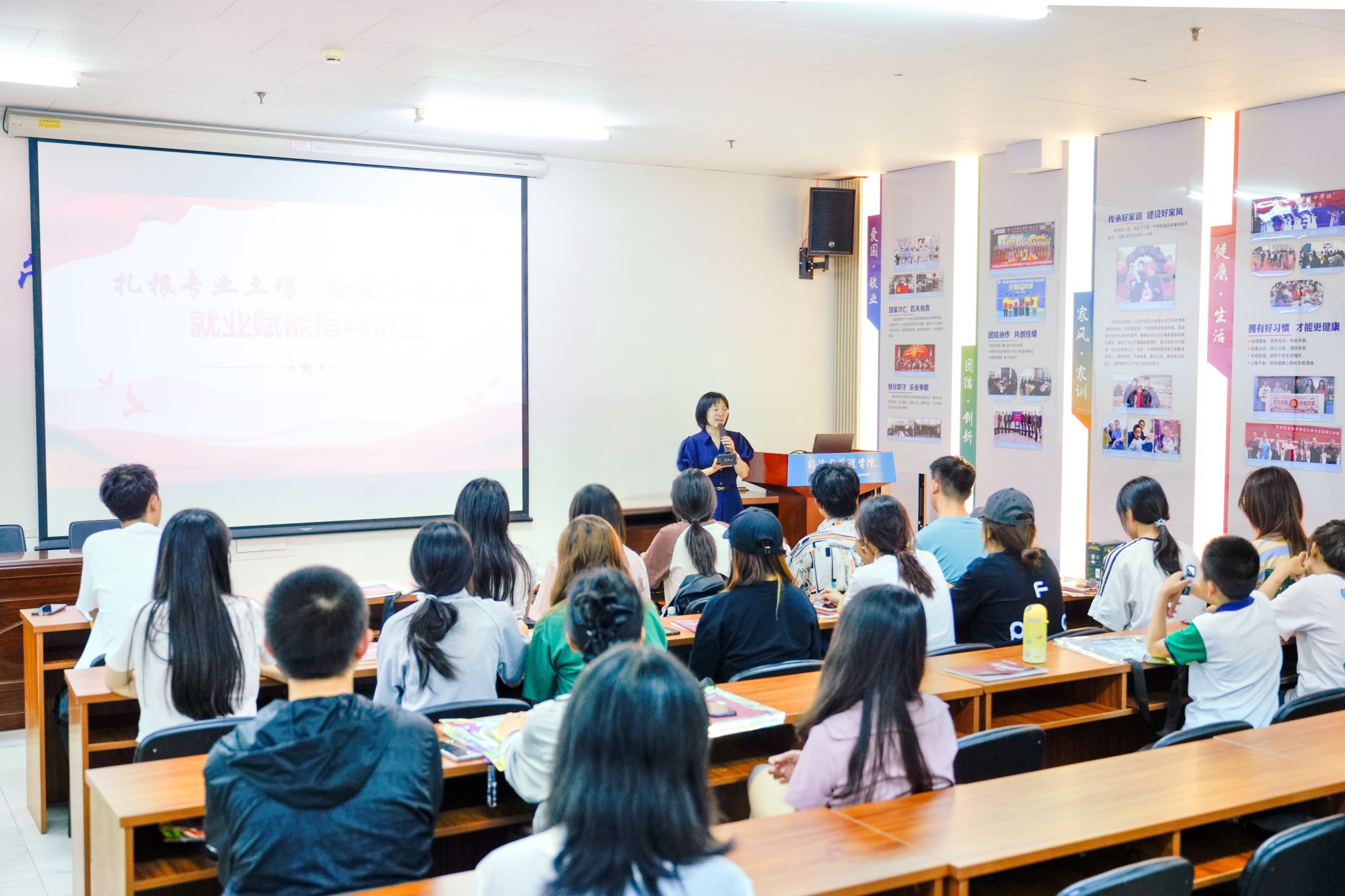 王爱敏为同学们介绍就业常识,并结合专业特点给予未来发展建议,为同学们树立积极向上的就业观念。