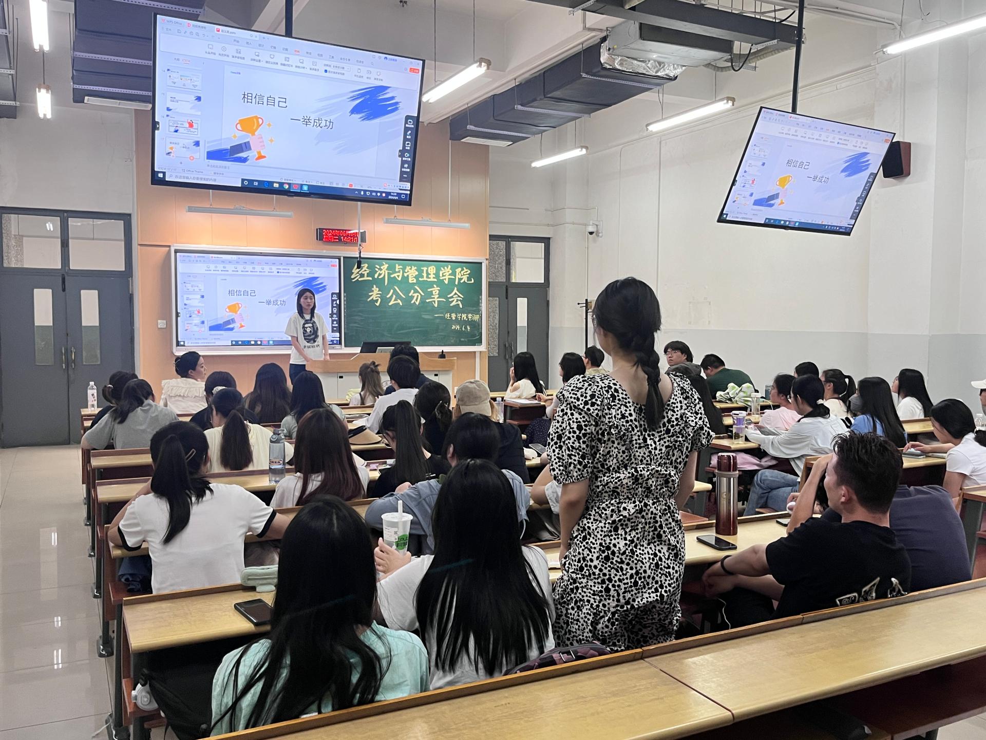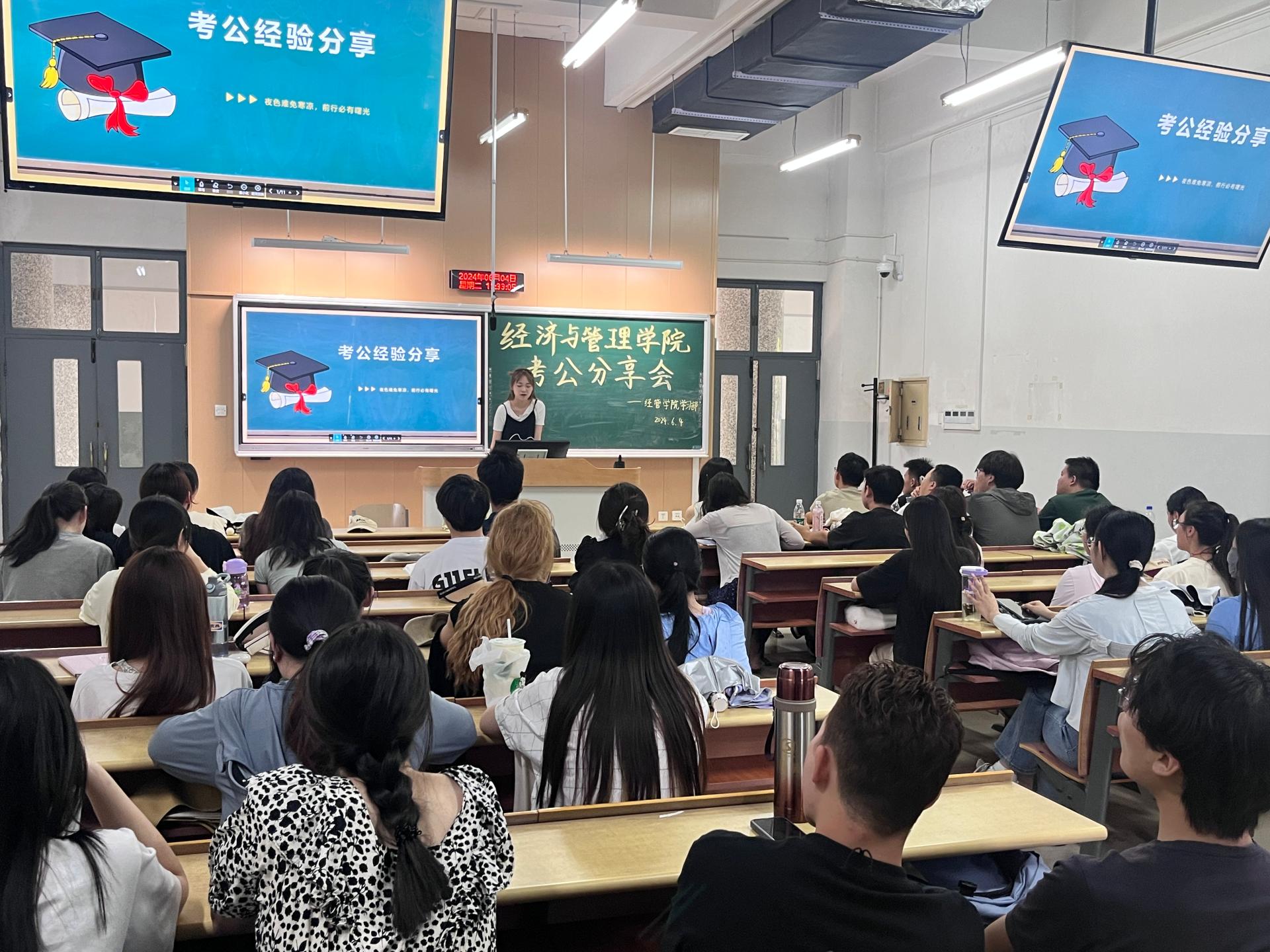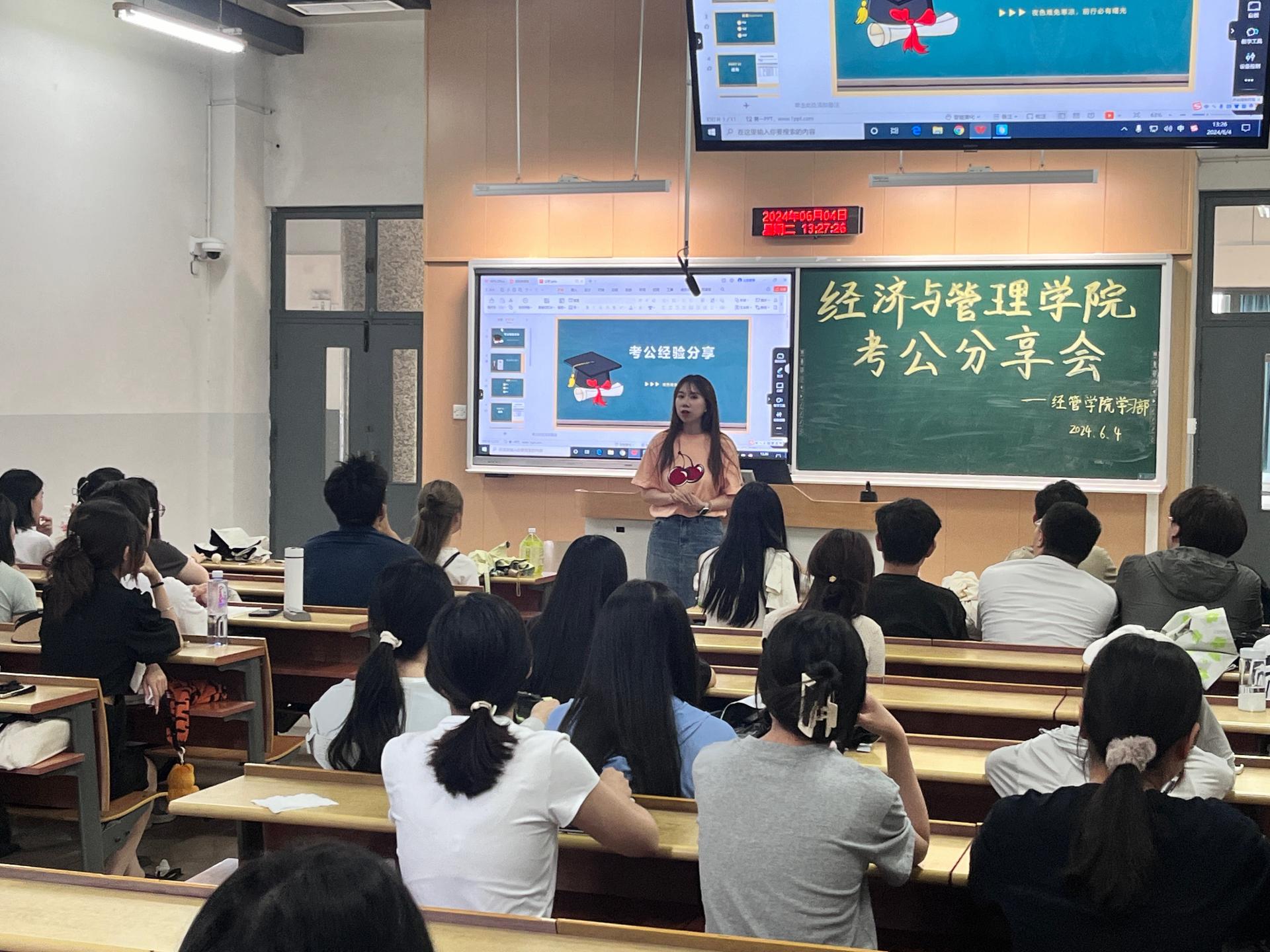 为进一步加强学风建设,发挥朋辈示范引领作用,做好公务员考试指导服务,6月4日,公司在第三教学楼103教室举办“丁香花开,助力成‘公’”公务员考试经验分享会,邀请刘蕊、赵艺葳、纪欣蕾、何平等四名优秀考公员工代表分享经验。辅导员李丹慧主持会议,百余名2025届考公学子参会。