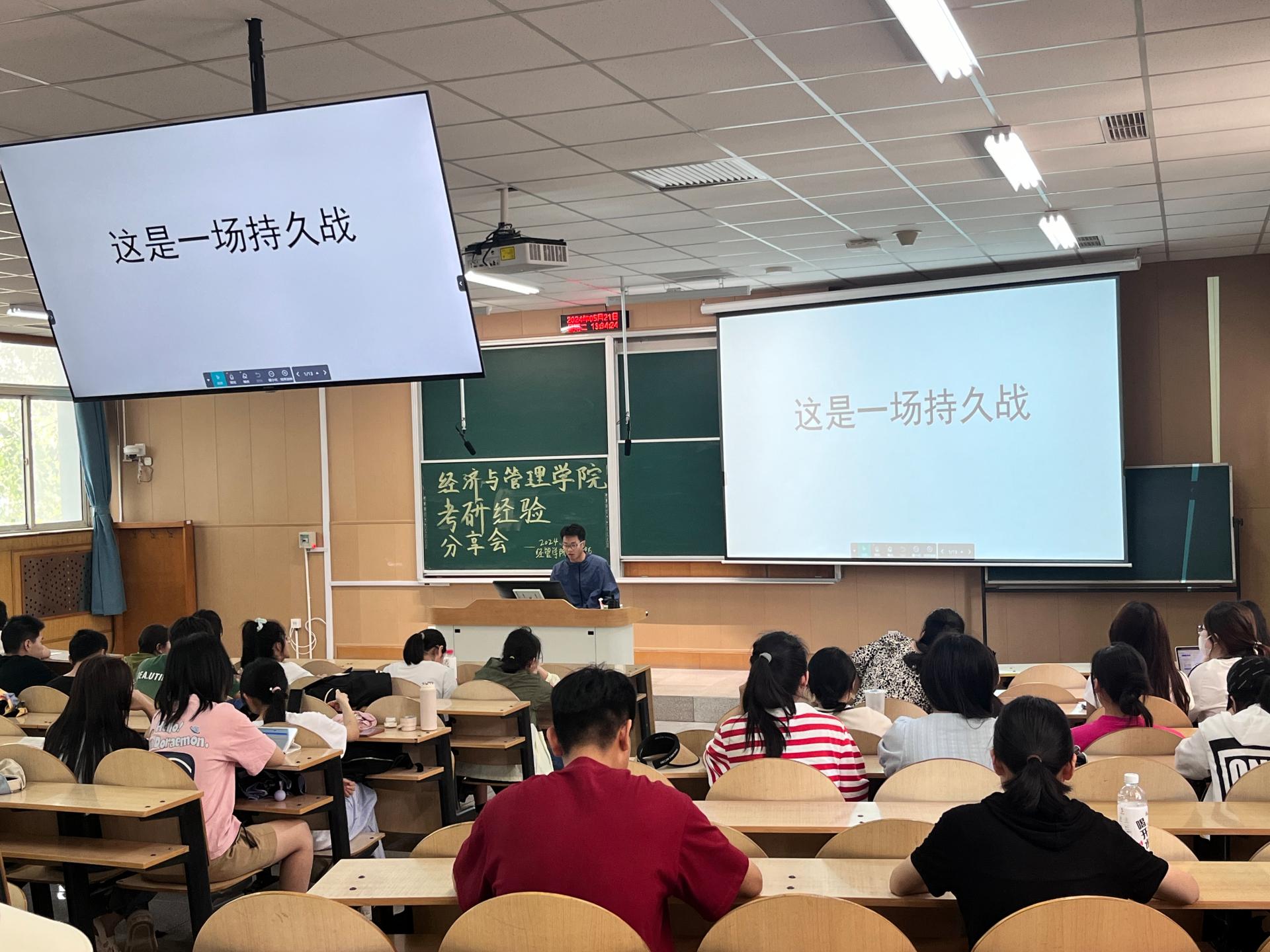 会上,优秀考研学子结合自身备考经历,分享了院校专业选择、科学制定备考计划、搜集考研相关信息、复习方法与技巧、调整考试心态等方面的经验,并鼓励大家正确面对备考过程中的挫折和困难,全身心投入到考研备战中。