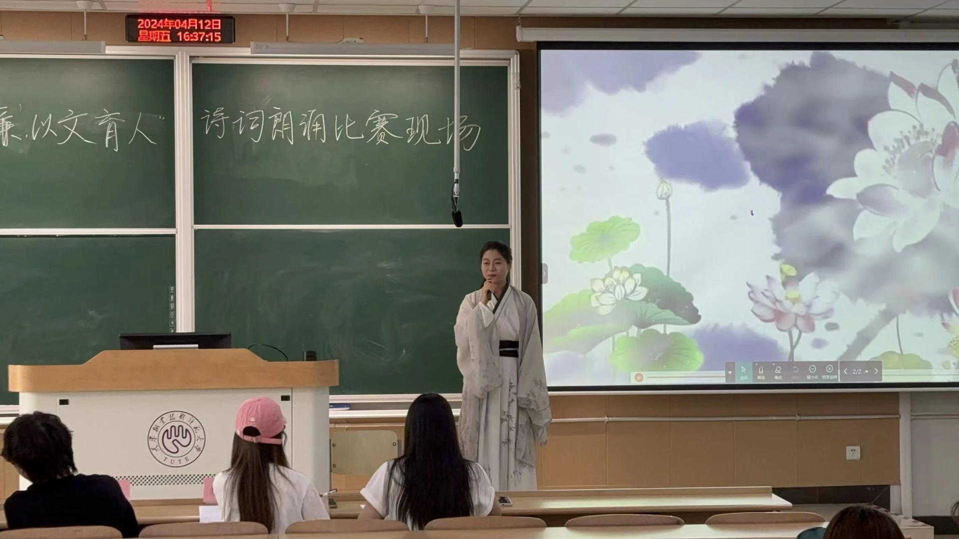 决赛现场,各代表队紧扣清廉主题,以诗咏志、以诵抒怀,以青年之声传递清廉之风,诠释诗词的韵律和意境,为现场观众呈现了一场清如梅品、廉似兰香的视听演出。评委从朗诵内容、语言表达、情感姿态、服饰仪表、演讲技巧等方面进行现场打分。“一句‘出淤泥而不染,濯清涟而不妖’生动的描绘了莲的风度、莲的气节,我们不论身处何处,都要坚持自己,廉洁正直”。 经过激烈角逐,来自信管2301班的马煜桐同学以朗诵《爱莲说》摘得桂冠。
