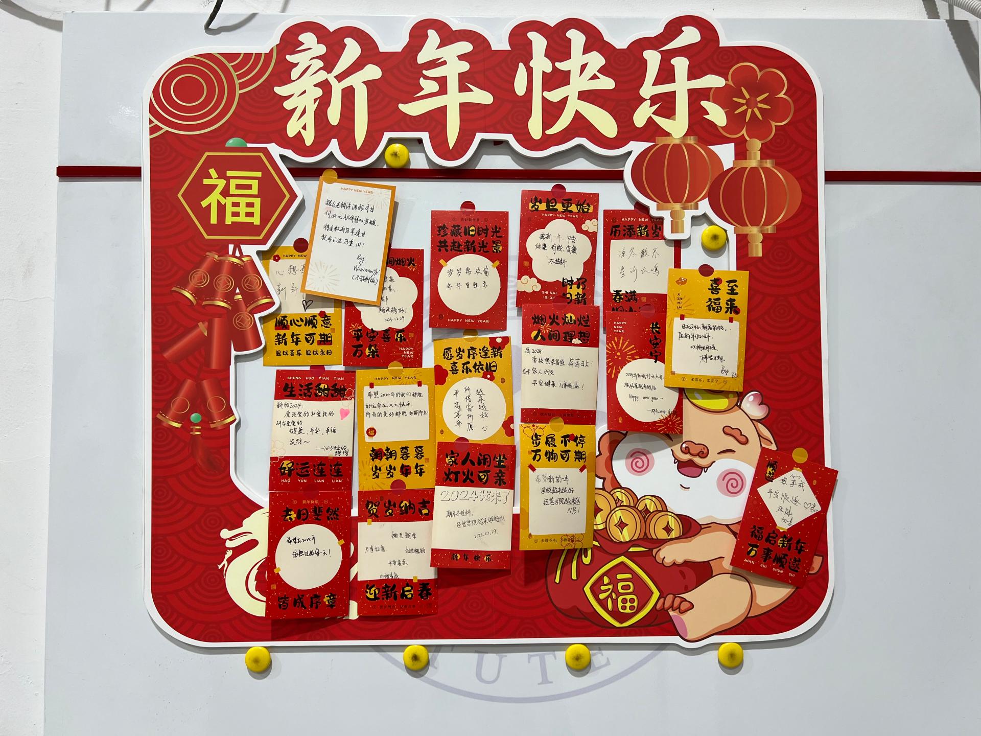 活动当日,在师生的精心准备下,“一站式”员工社区中呈现“新年限定版”装扮,大红灯笼高高挂在员工社区,为这个寒冷的冬天增添了喜庆、祥和的节日氛围。