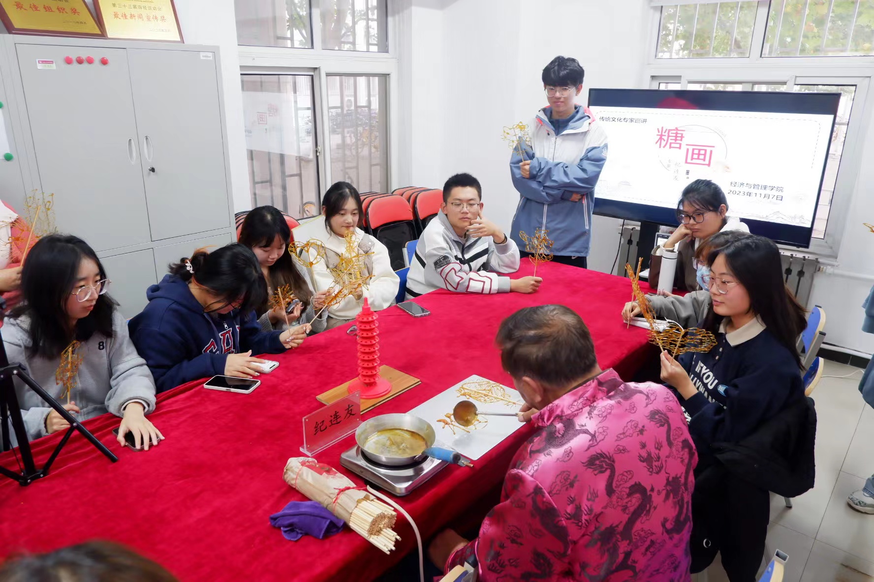 互动环节中,纪连友老师邀请同学们一起制作糖画。在他的指导下,同学们以铜勺为笔,以糖液作墨,不一会儿工夫,惟妙惟肖、生动传神的糖画就展现在眼前。同学们纷纷表示,通过近距离体验糖画艺术,进一步加深了对中华优秀传统文化的理解,努力争做弘扬中华优秀传统文化的传承者与传播者,立志成为堪当民族复兴大任的时代新人。
