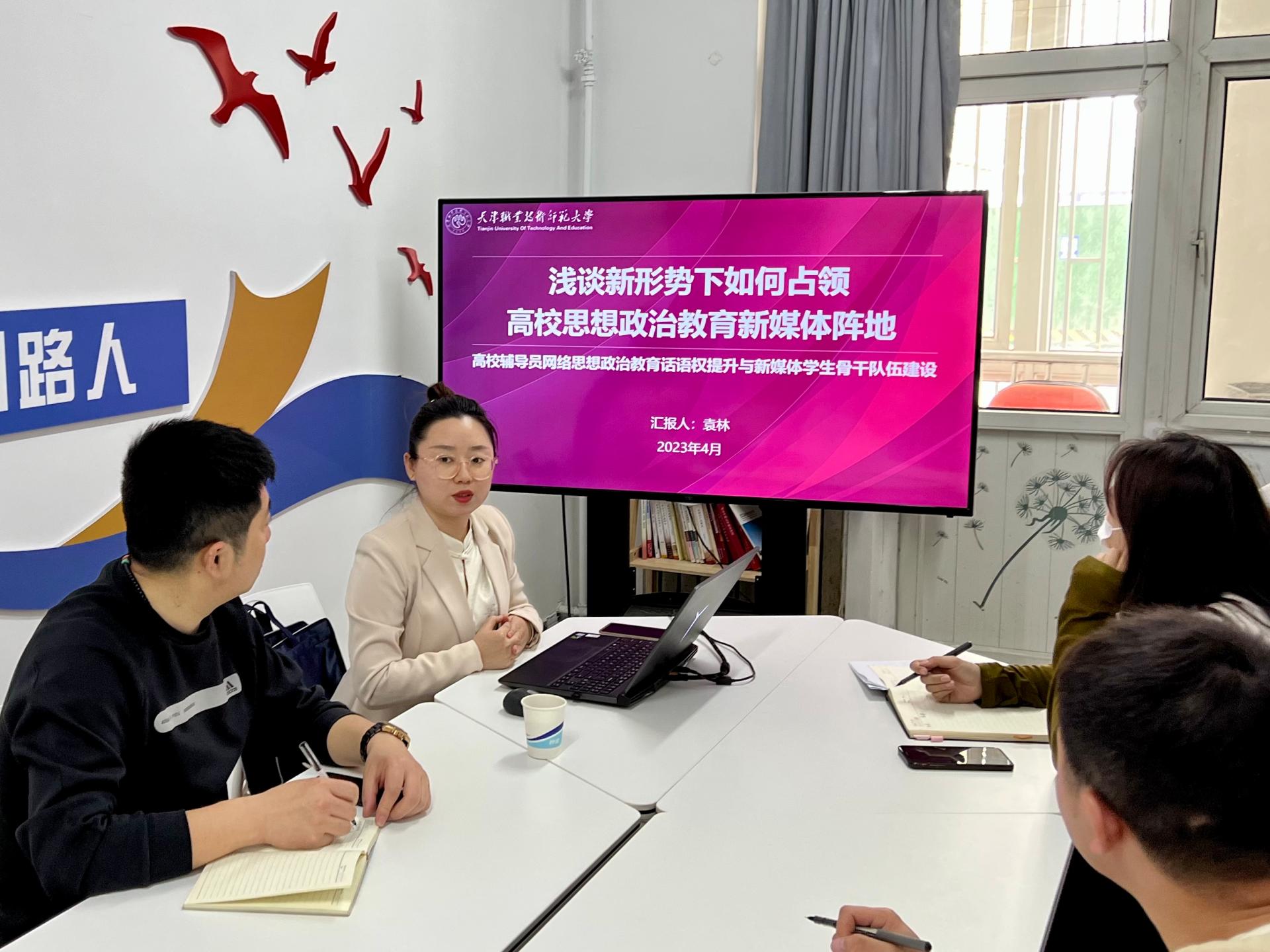 为深入学习宣传贯彻党的二十大精神,巩固壮大奋进新时代的主流思想舆论,加强全媒体传播体系建设,4月28日,“大树”辅导员工作室“辅导员素质能力提升工程”专题培训第三讲在“一站式”员工社区开展。邀请天津市普通高校优秀辅导员、公司电子工程公司袁林老师做“新形势下如何占领高校思想政治教育新媒体阵地”主题讲座,院团委书记张贺忠主持,公司全体辅导员参会。