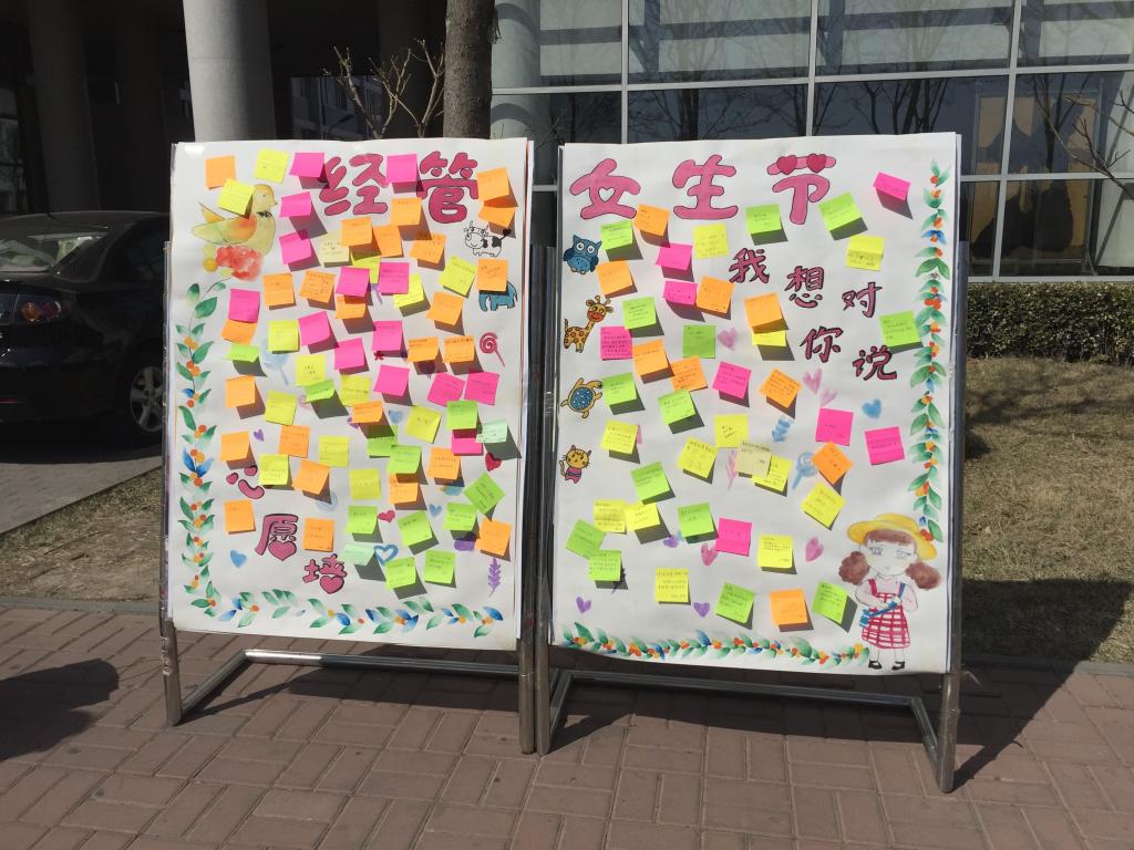3月6日晚上由公司员工会相关成员收集女生在节日的心愿和祝福语,并写在便利贴上,3月7日早晨,将载满心愿的便利贴贴于精心制作的展板上,男生们揭取便利贴,帮助女生实现小小的节日心愿。此外,各个班级还在员工会的号召下举行了具有班级特色的活动。