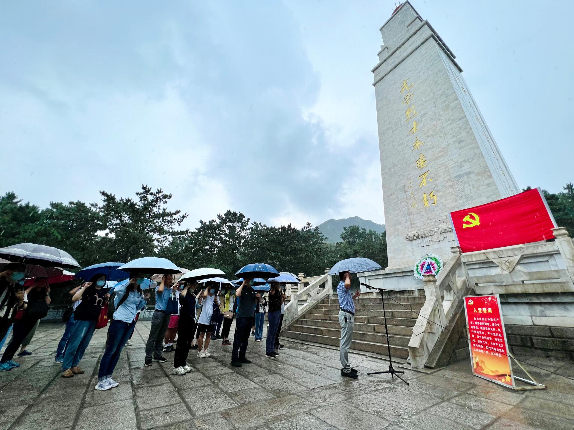 下午,全体党员怀着对革命先烈的敬仰之情来到盘山烈士陵园,瞻仰烈士纪念塔,敬献花圈,庄严默哀,深切表达对抗日烈士的敬仰与缅怀之情。全体党员面向党旗,举起右拳,庄严宣誓,表达对先烈的诚挚敬意及为党的事业奋斗终身的坚定理想信念。