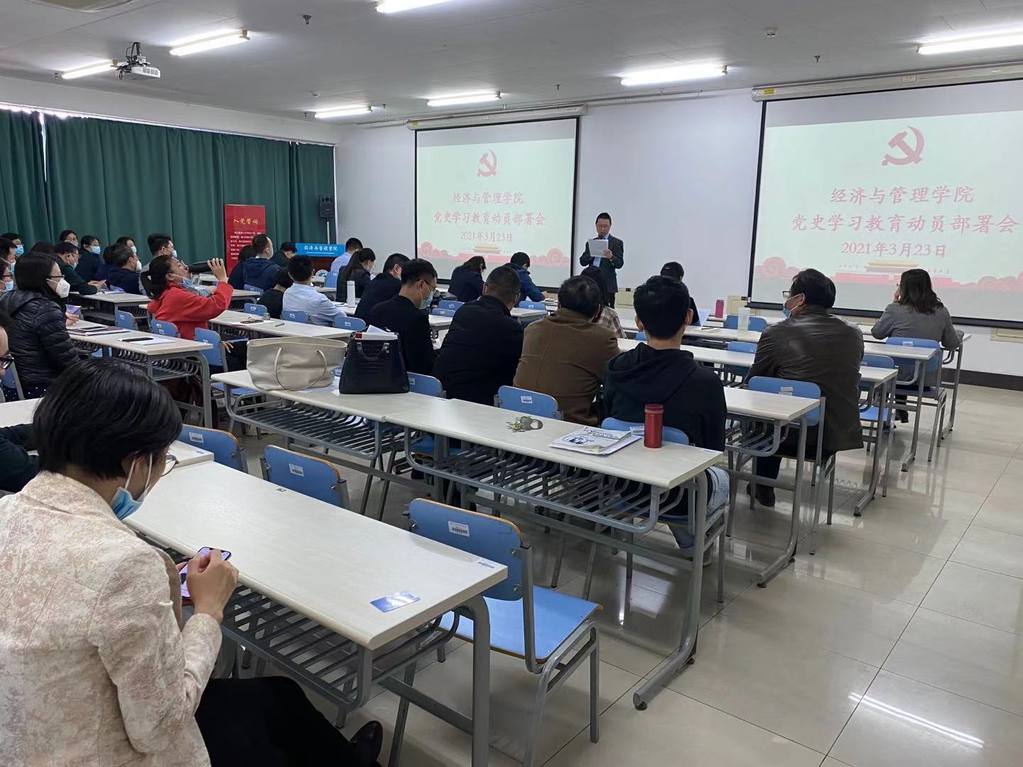 3月23日下午,经济与管理公司党委召开党史学习教育动员部署会。全体教师、干部参会。公司常务副书记吴平做党史学习教育动员部署。