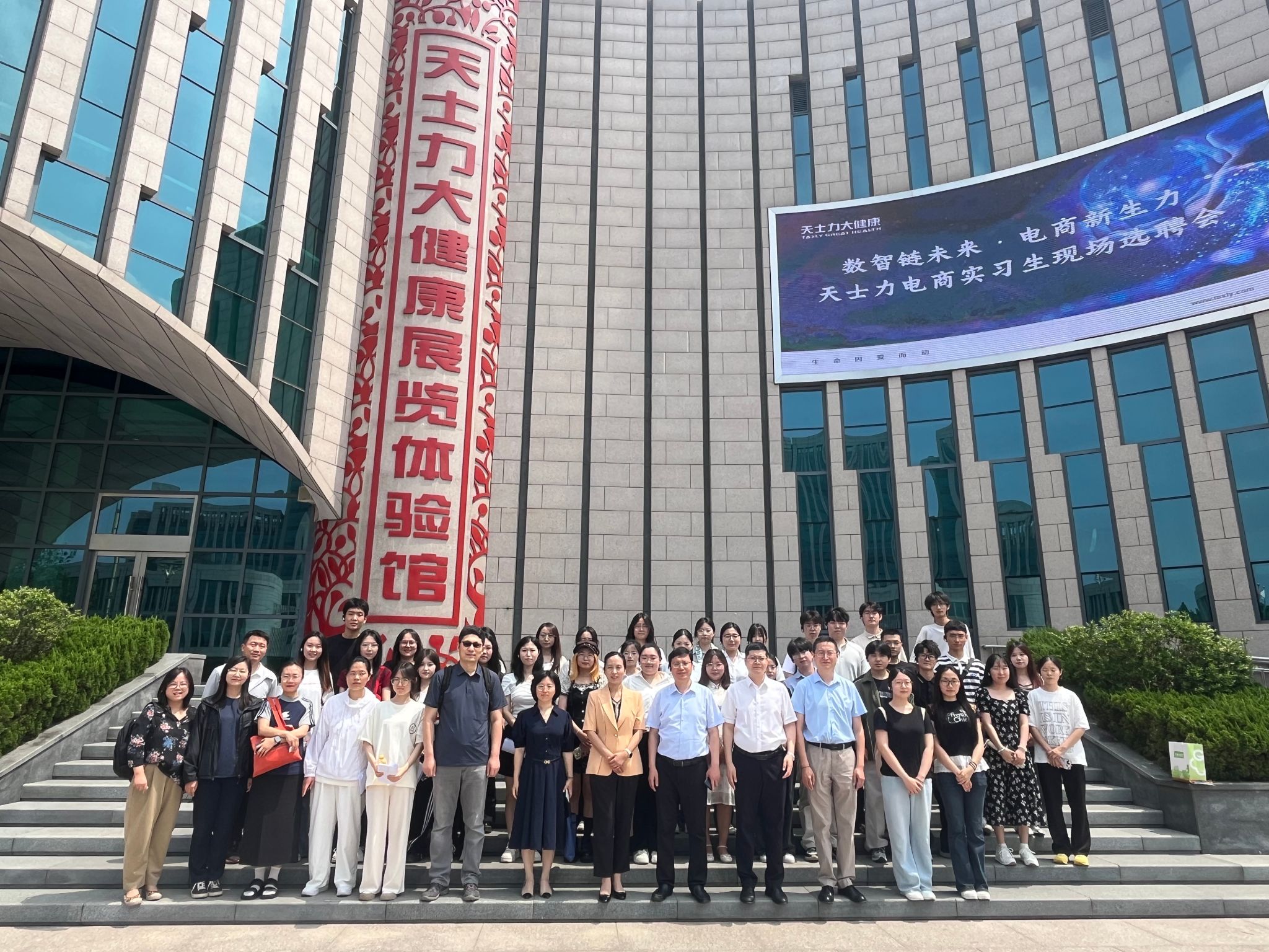 为精准对接行业前沿需求,拓宽员工高质量实习就业渠道,2025年7月4日,经济与管理公司党委副书记郭丽芳、副经理齐旭高、电子商务系主任张波、副主任田怡、2026届毕业班辅导员殷天皓、电子商务专业教师代表及“西部之光”访问学者陈韵帆,带领36名电子商务专业员工赴天士力大健康产业集团开展“数智链未来·电商新生力”访企拓岗暨实习生选聘活动。此次活动标志着校企双方在共育数字商业人才方面迈出坚实一步。