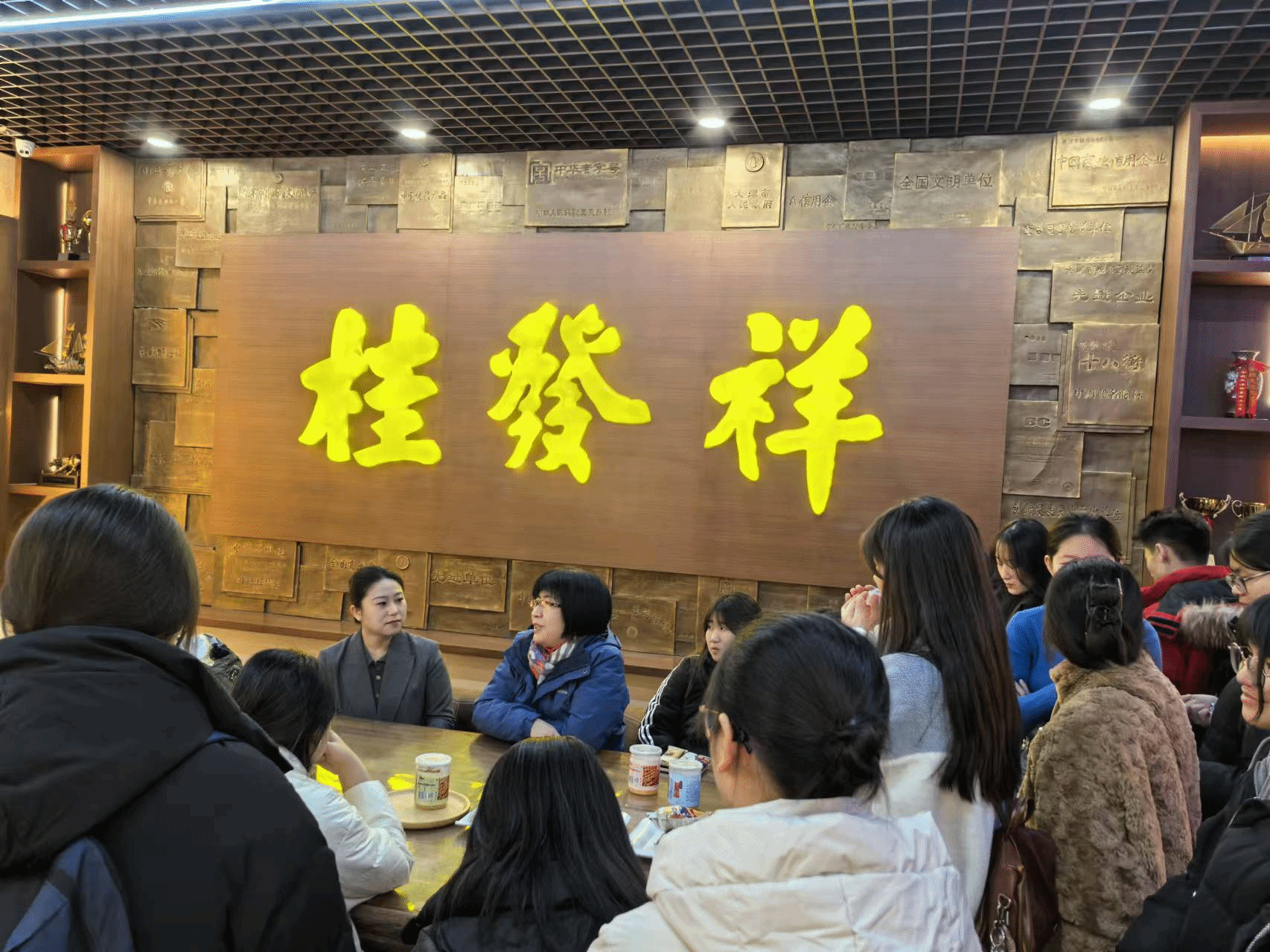 为进一步深化产教融合、加强专业内涵建设、拓宽校企合作渠道,12月19日,PA视讯官方网站人力资源与社会保障系罗青兰教授、李薇、曹洁老师带领人力专业员工代表,走进桂发祥十八街麻花文化馆参观调研,触摸新时代新征程上“津门老字号”企业发展新脉搏,探索未来发展新动向。天津桂发祥十八街麻花食品股份有限公司工会主席杨淅寒热情接待了来访师生。