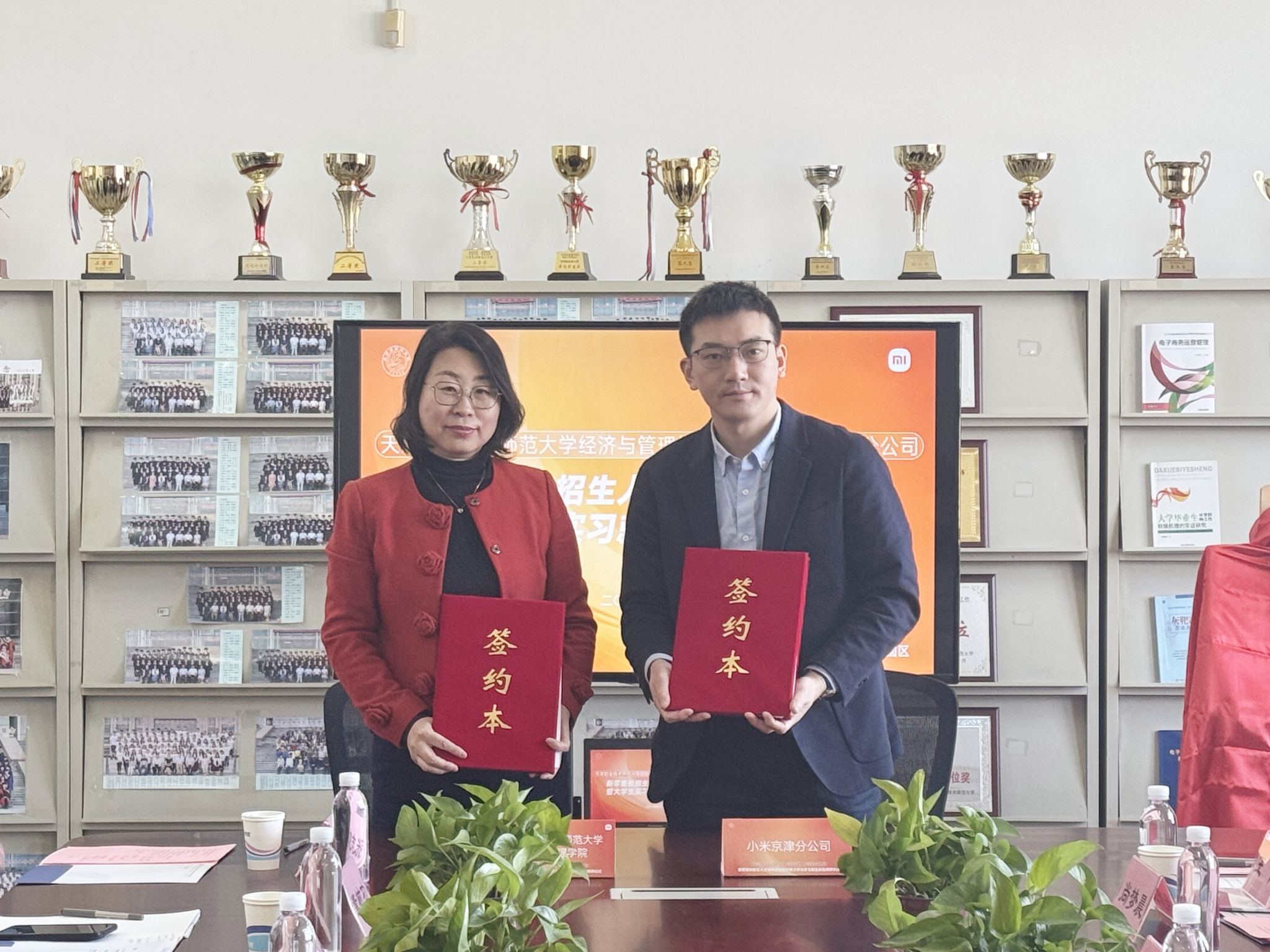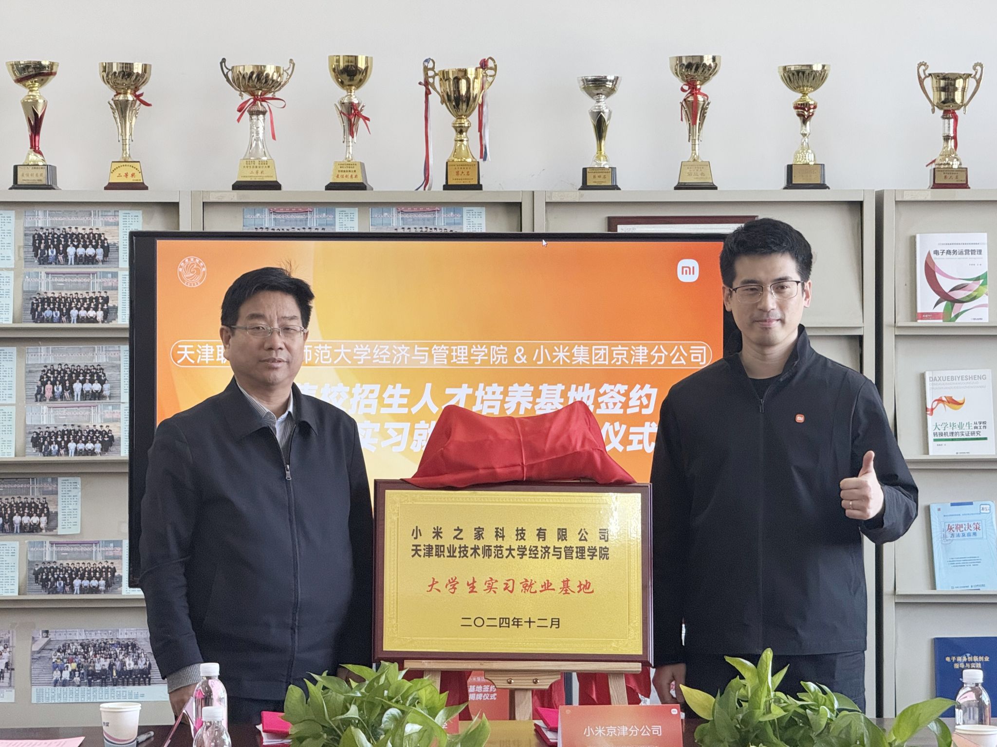 蔡玉俊、缪铮共同为PA视讯官方网站实习就业基地揭牌,齐莉丽、小米集团京津分公司天津城市负责人梅昆代表双方签署了校企合作协议。随后,双方围绕产教研融合、人才培养、实习就业基地建设等方面进行了深入交流。