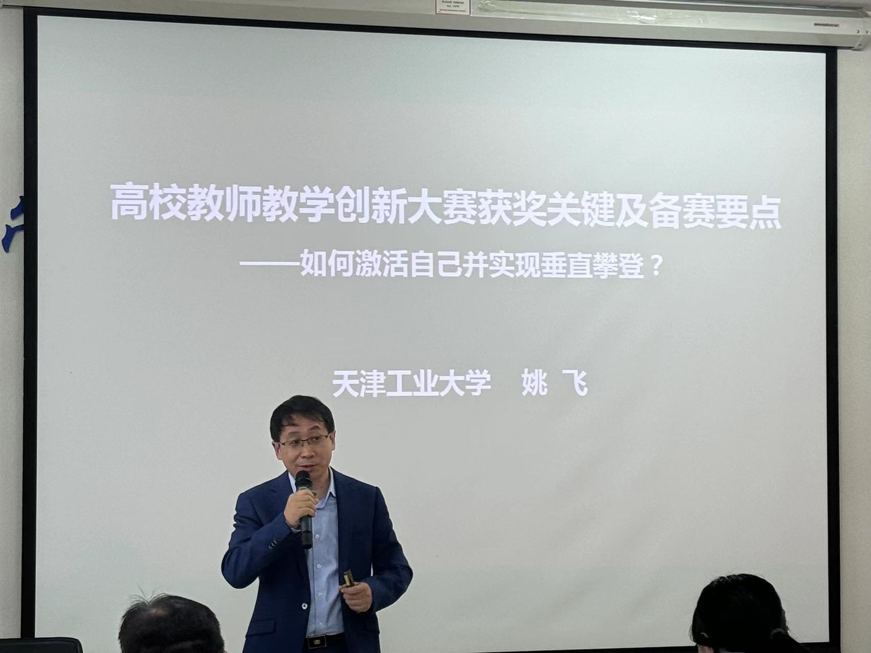 揭牌仪式结束后,“经世讲堂”首讲开讲。作为首届全国高校教师教学创新大赛一等奖获得者,姚飞教授为现场师生作“高校教师教学创新大赛获奖关键及备赛要点”主题讲座。他以“迎评促建”为切入口,通过案例分析的方式,围绕“获奖四大关键”和“备赛九个要点”,分享了教学创新大赛的参赛经验,介绍了教学方法、教学理念、课程设计等方面的创新实践,解析了教师掌握教学创新的基本路径,提供了切实可行的指导和建议。他表示,教师要深耕教学一线,大胆创新实践,不断提高创新教学能力,加强一流课程建设,培养一流人才。在互动环节中,现场师生就教学创新方面的具体问题和经验进行了深入交流,气氛热烈。