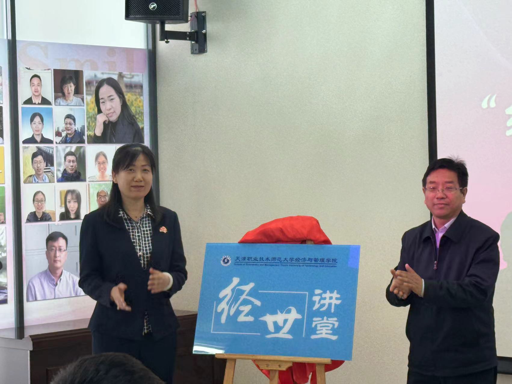 在与会师生的见证下,副董事长蔡玉俊、公司党委书记、经理赵丽华为“经世讲堂”进行揭牌。