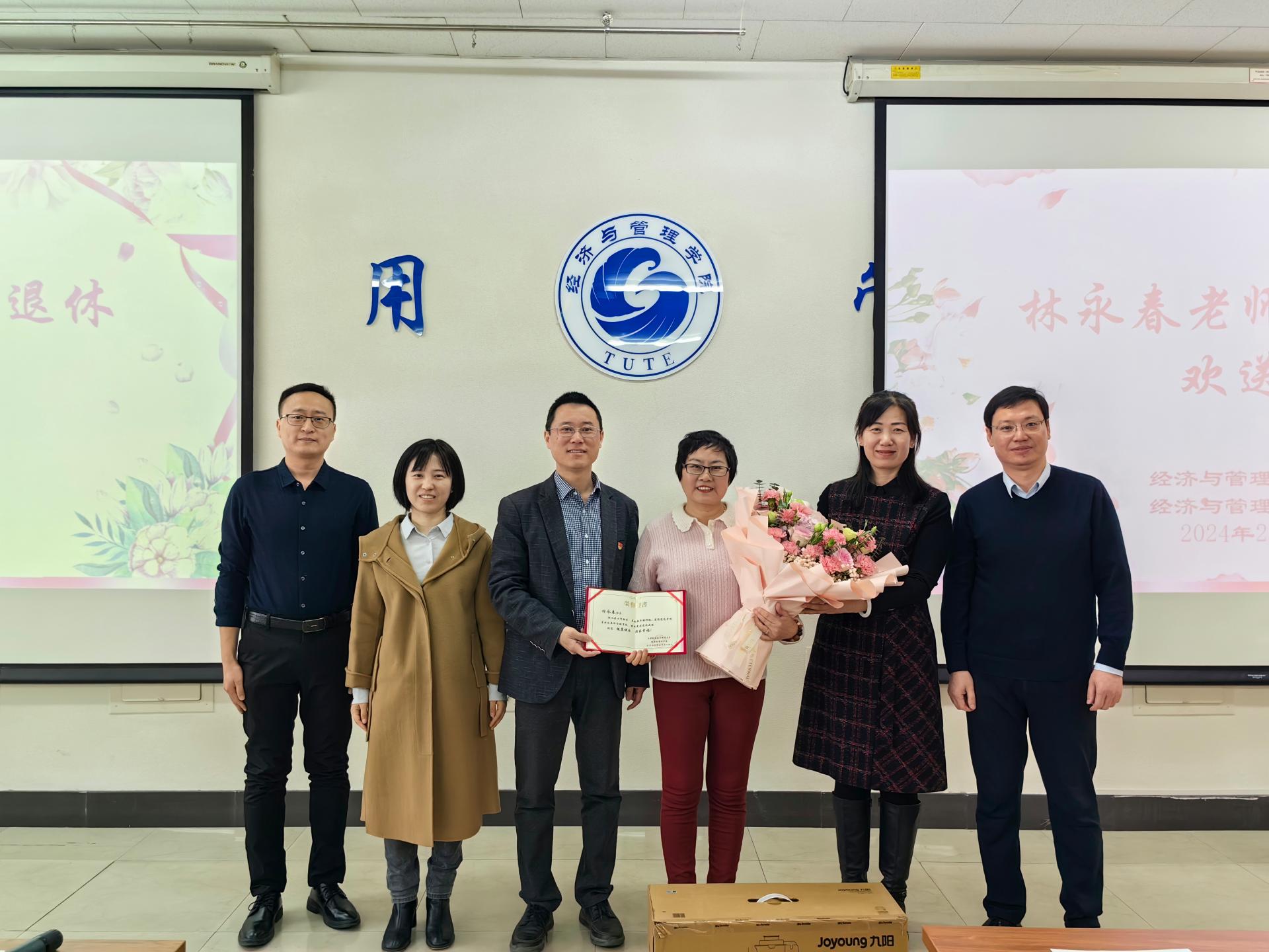 为感谢退休教师为教育事业作出的贡献,表达对退休教师的关心和尊重,2月29日,经济与管理公司党委、工会在公司教工小家为退休教师林永春举行荣退仪式,公司班子成员和全体教师参加活动,仪式由常务副书记、工会主席吴平主持。