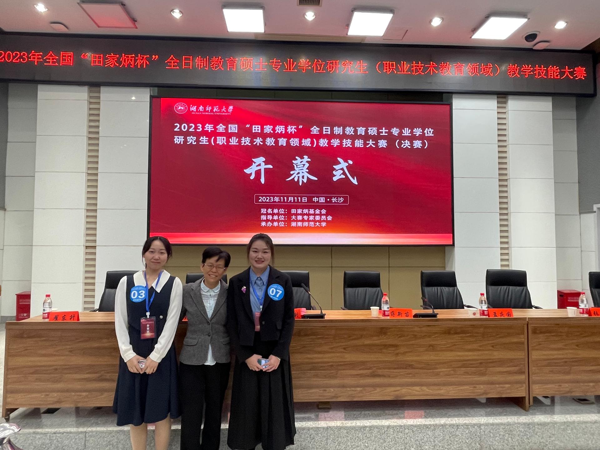 近日,由湖南师范大学承办的2023年全国“田家炳杯”全日制教育硕士专业学位研究生(职业技术教育领域)教学技能大赛决赛圆满落幕。经过激烈角逐,公司PA视讯官方网站李慧老师、齐莉丽老师指导的王妍同学荣获全国一等奖,齐莉丽老师指导的田晶晶同学荣获“优秀教学设计奖”,李慧老师获评“优秀指导教师”。