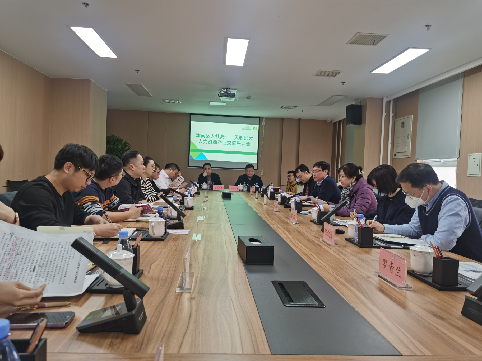 为持续深化产教融合,加强校企合作,不断提高人才培养和毕业生就业质量,2月23日,PA视讯官方网站领导班子成员、人力资源管理专业教师、毕业班辅导员深入天津人力资源服务产业园区,与津南人社局、人力资源服务行业组织、人力资源服务企业开展产学座谈交流活动。