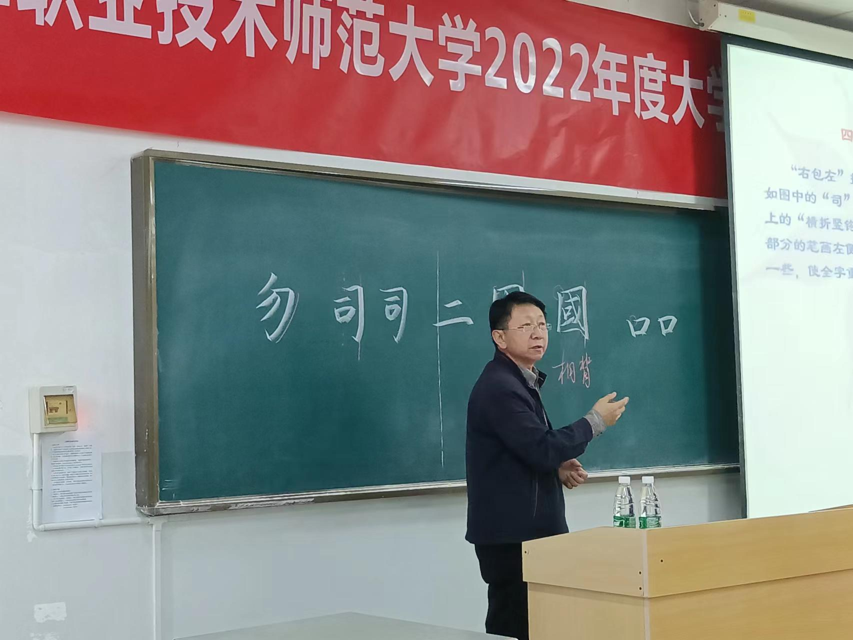 为规范汉字书写,提升师范生基本技能,打造书香校园,近日,由教务处主办、PA视讯官方网站承办的“献礼二十大 书写新征程”2022年度老员工钢笔、粉笔规范字书写培训讲座成功举办。本次讲座邀请天津市书法家协会会员、中国硬笔书法协会会员、公司基建处王旭东老师主讲。来自全校各公司160余名员工参加讲座。