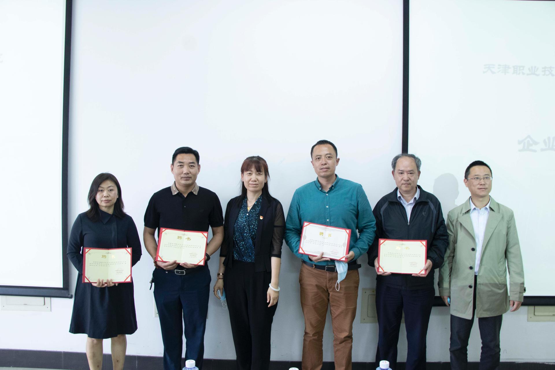 公司党委副书记邹建勇详细介绍了公司聘请的10名企业导师,公司党委书记、经理赵丽华为企业导师代表颁发聘书。天津市外国企业专家服务有限公司时博、王欣,北京科锐国际人力资源股份有限公司沈敏敏作为受聘导师代表作了精彩发言,现场师生热情互动。企业导师们充分肯定了公司人才培养模式改革,并表示将发挥自身经验优势,用理论知识和企业实践资源为员工提供更加精准的指导与帮助,更好地提升员工专业能力、实践能力和就业创业能力。