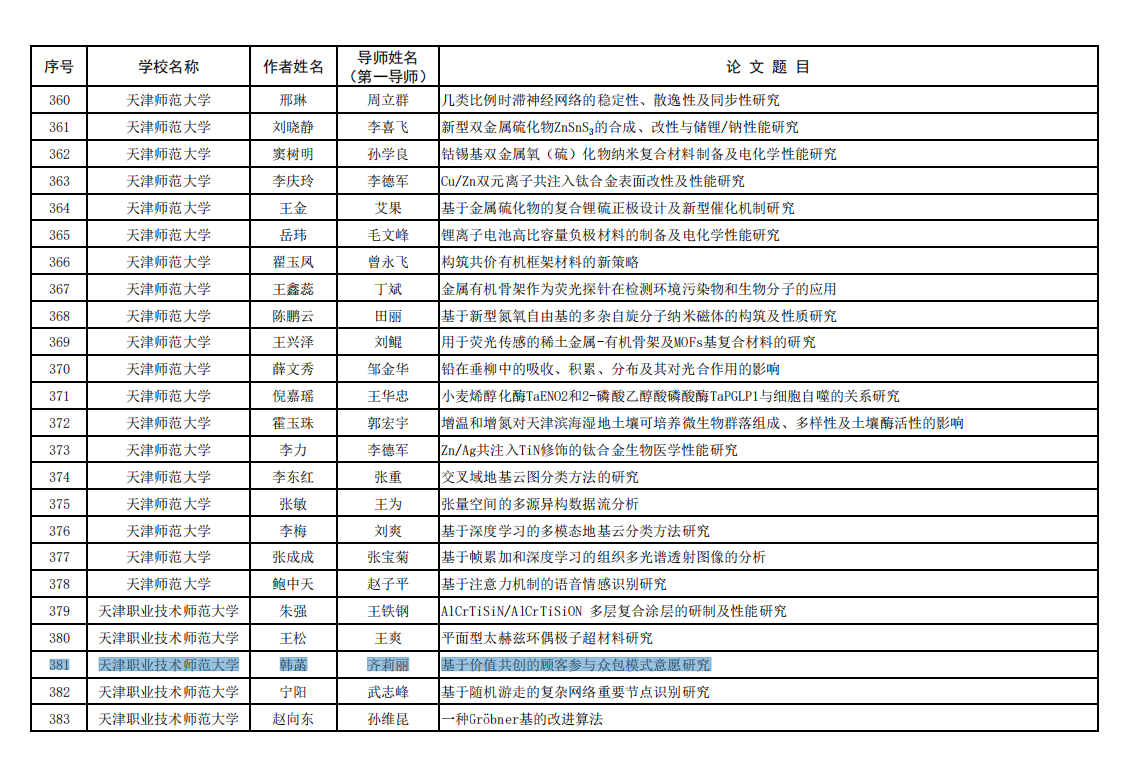 近日,2022年天津市优秀硕士学位论文结果揭晓,2018级管理科学与工程专业硕士研究生韩菡(指导教师齐莉丽)撰写的学位论文《基于价值共创的顾客参与众包模式意愿研究》被评为“天津市优秀硕士学位论文”。