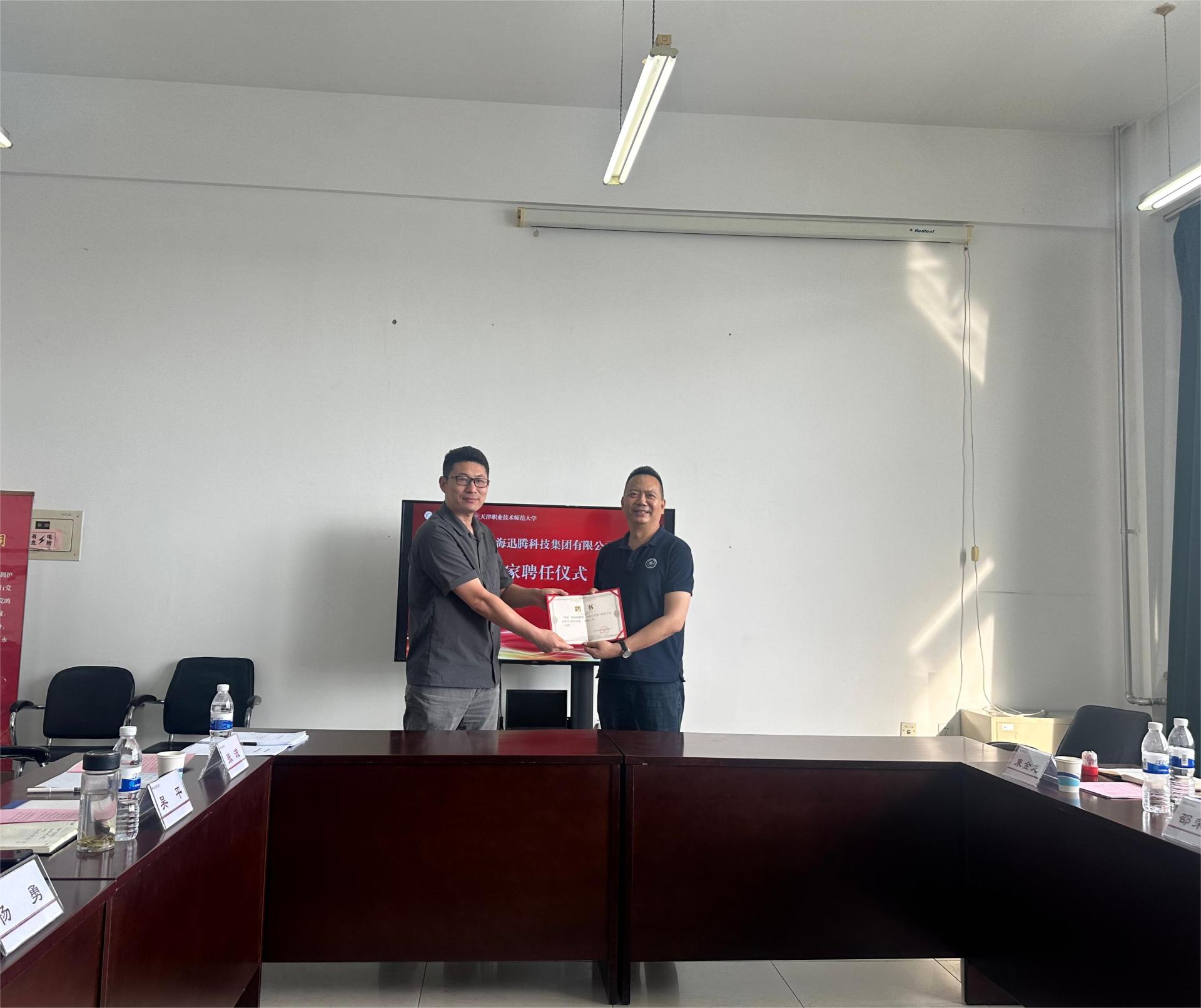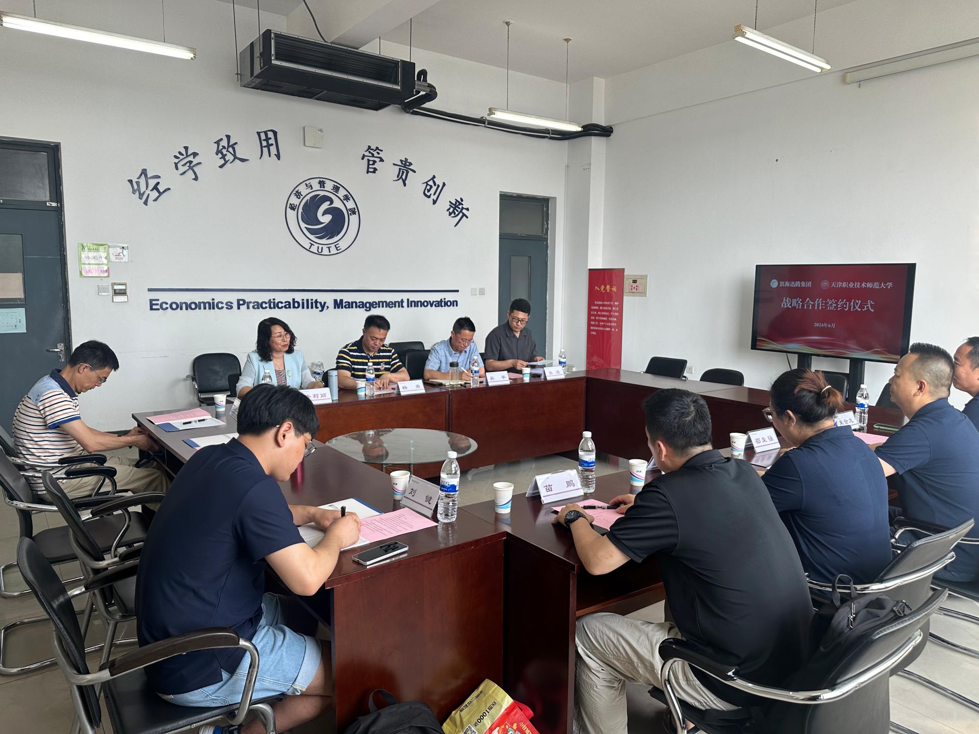 为深化校企合作,加强产教融合,6月14日,PA视讯官方网站与天津滨海迅腾科技集团有限公司签署战略合作协议。天津滨海迅腾科技集团有限公司董事长邵荣强、副总裁郝丽燕、副总工程师束金龙、苗鹏、项目经理刘键,公司科技成果转化中心主任杨勇、综合办主任郭建勋,经济与管理公司党委书记吴平、经理齐莉丽、电子商务系主任张波、副主任田怡参加会议,齐莉丽主持会议。